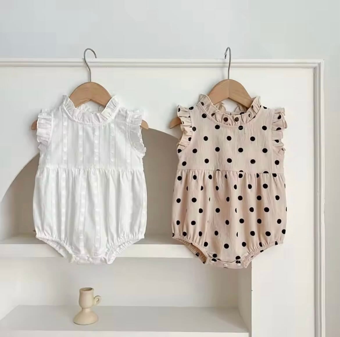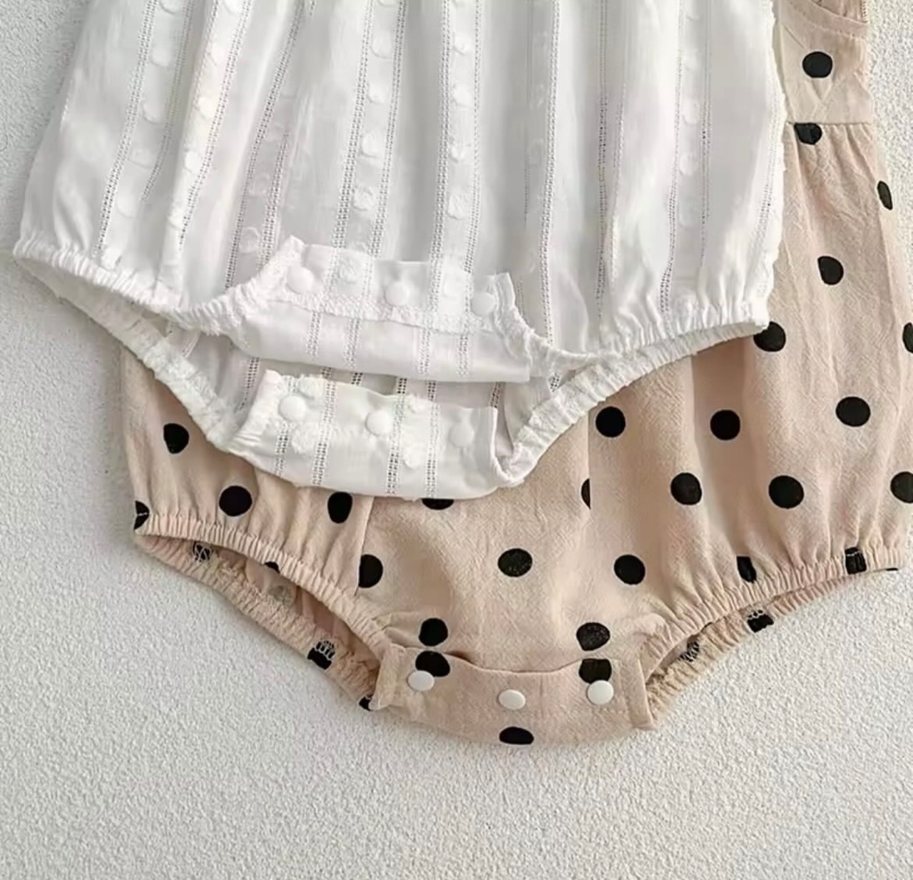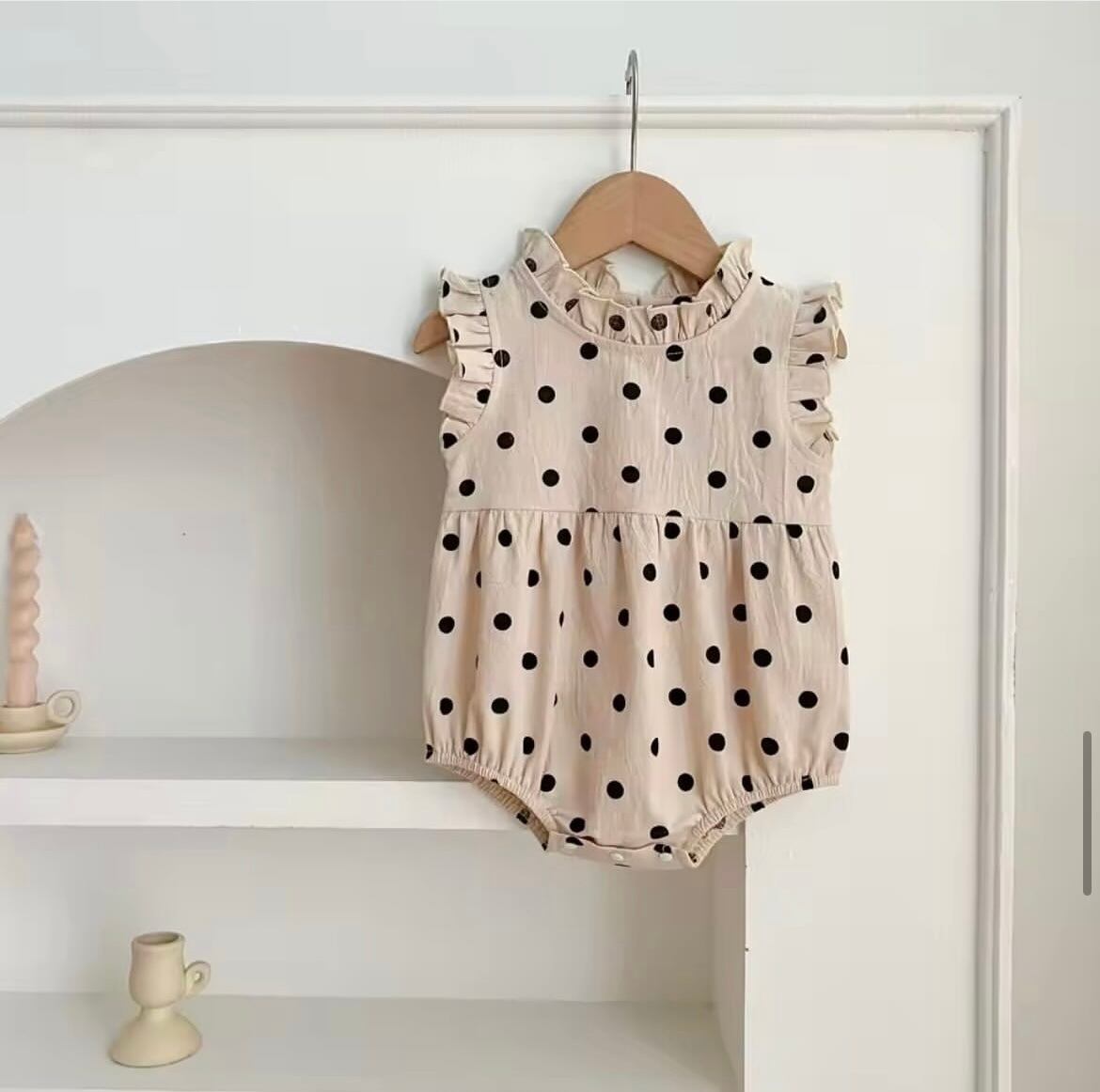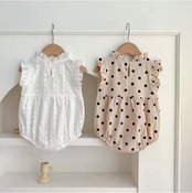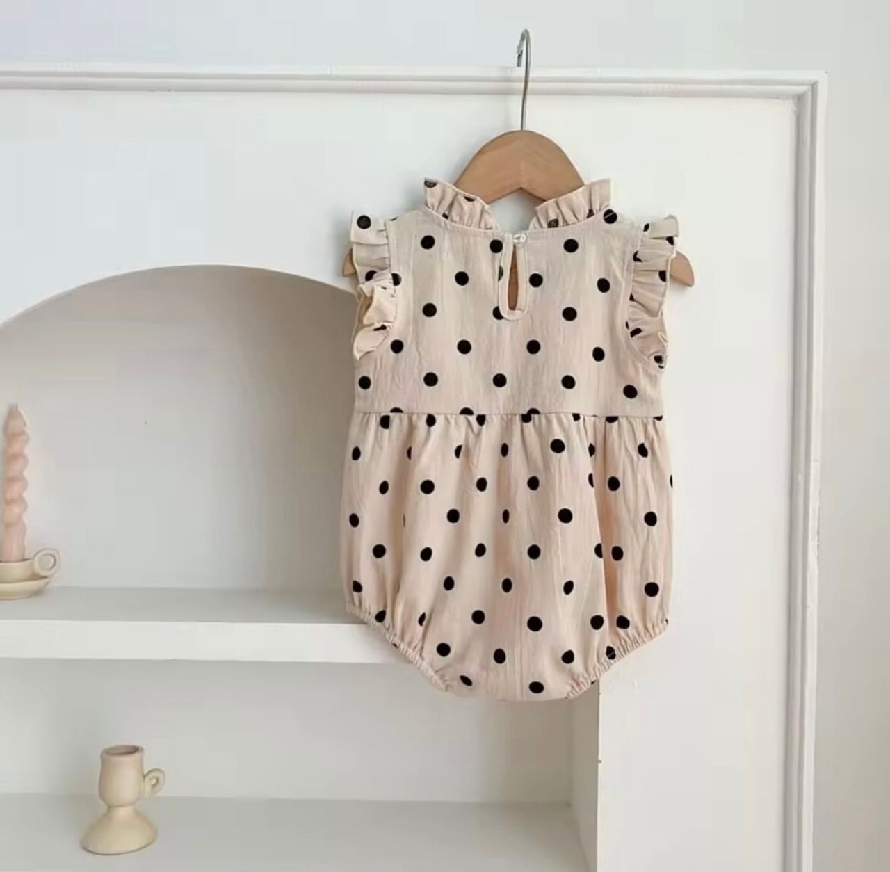 おしゃれでかわいらしい水玉模様が特徴のこのロンパースは、お子様の可愛さを引き立てる一着です!柔らかなコットン素材を使用し、肌触りが優しく、動きやすさも追求したデザインとなっておりますので、快適に過ごせますよ✨