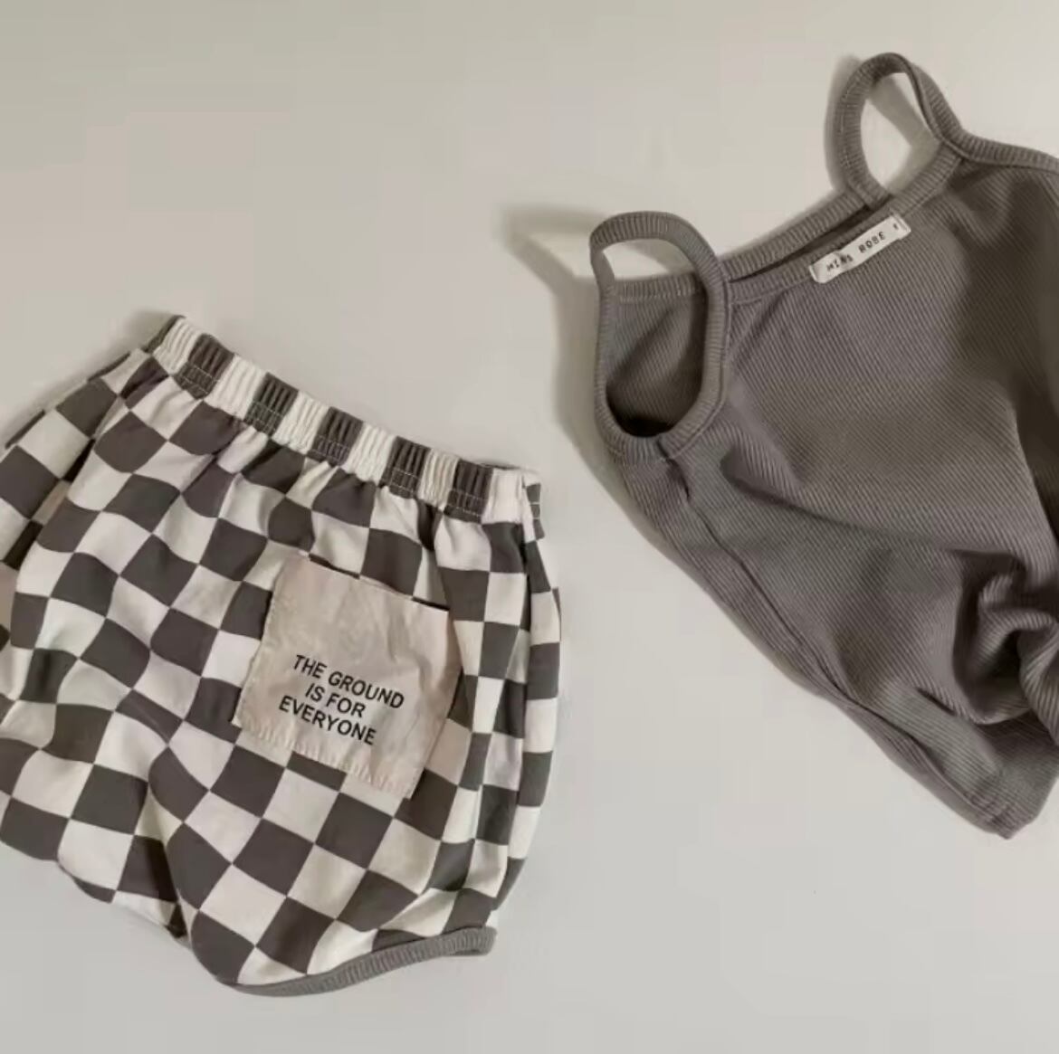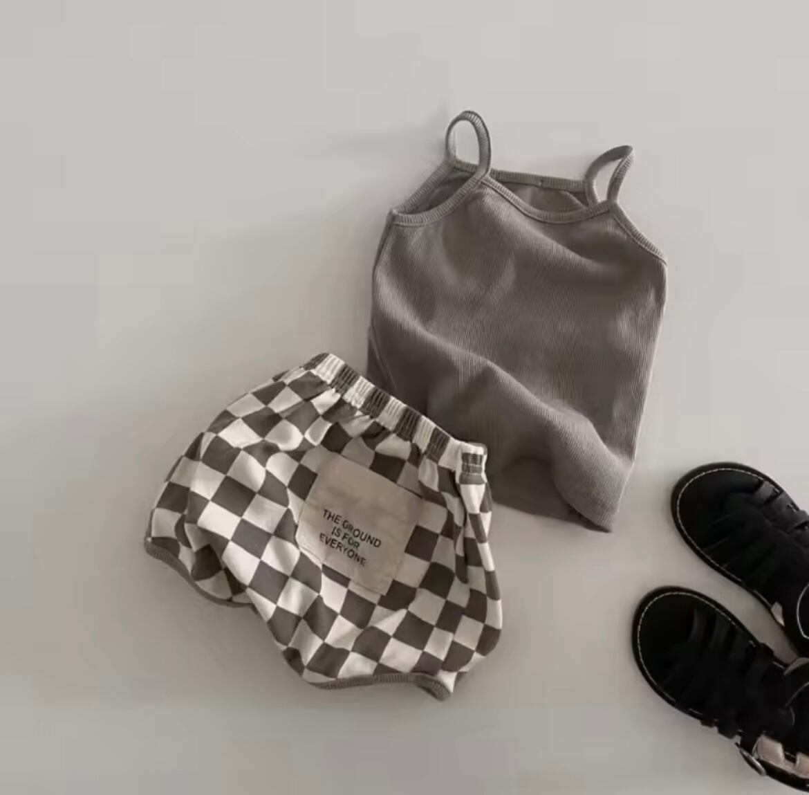 シンプルでありながらおしゃれなデザインが特徴のノースリーブとチェックショーツセットは、これからの季節にぴったりのアイテムです!軽やかな素材を使用しており、快適な着心地を提供します♡