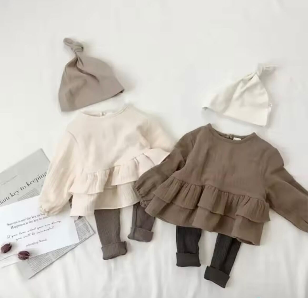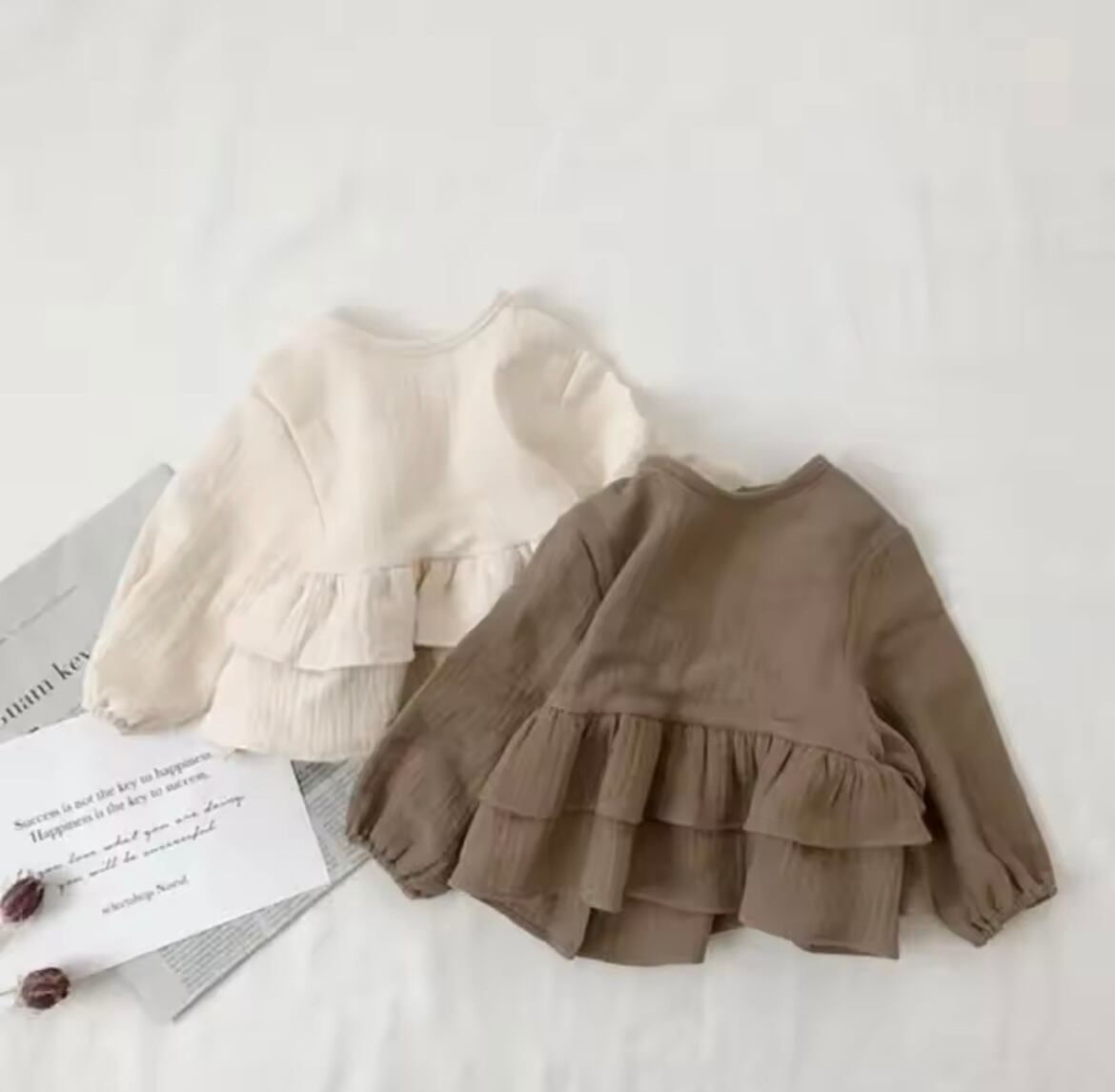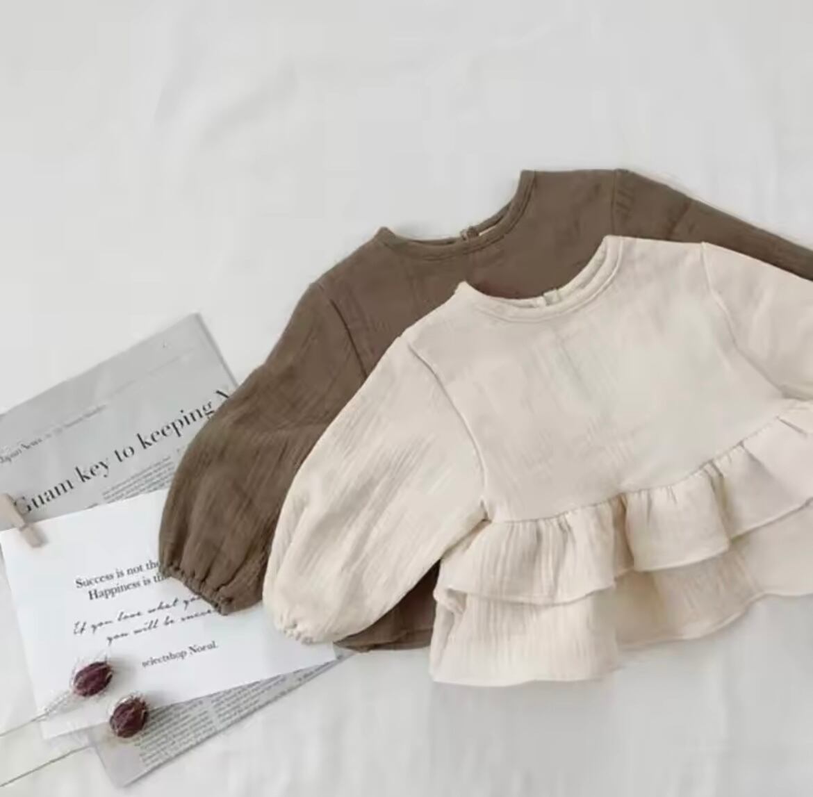柔らかなコットン素材を使用したこのロンTは、フリルデザインが特徴的で、可愛らしさが引き立つ一着です♡ 肌触りも良く、お子様が快適に過ごせるように作られています。デイリー使いにも特別なお出かけにもぴったりのアイテムです!