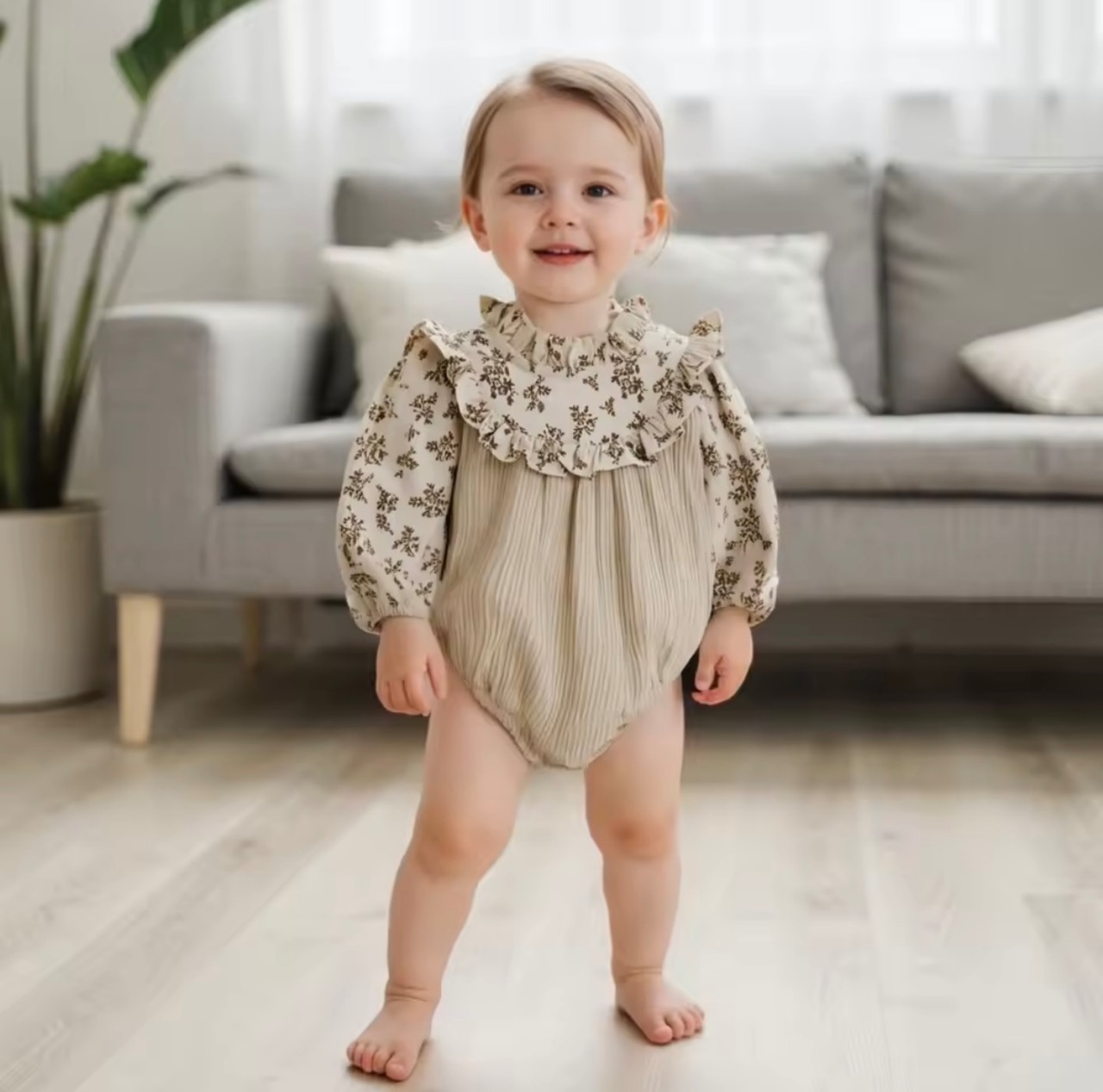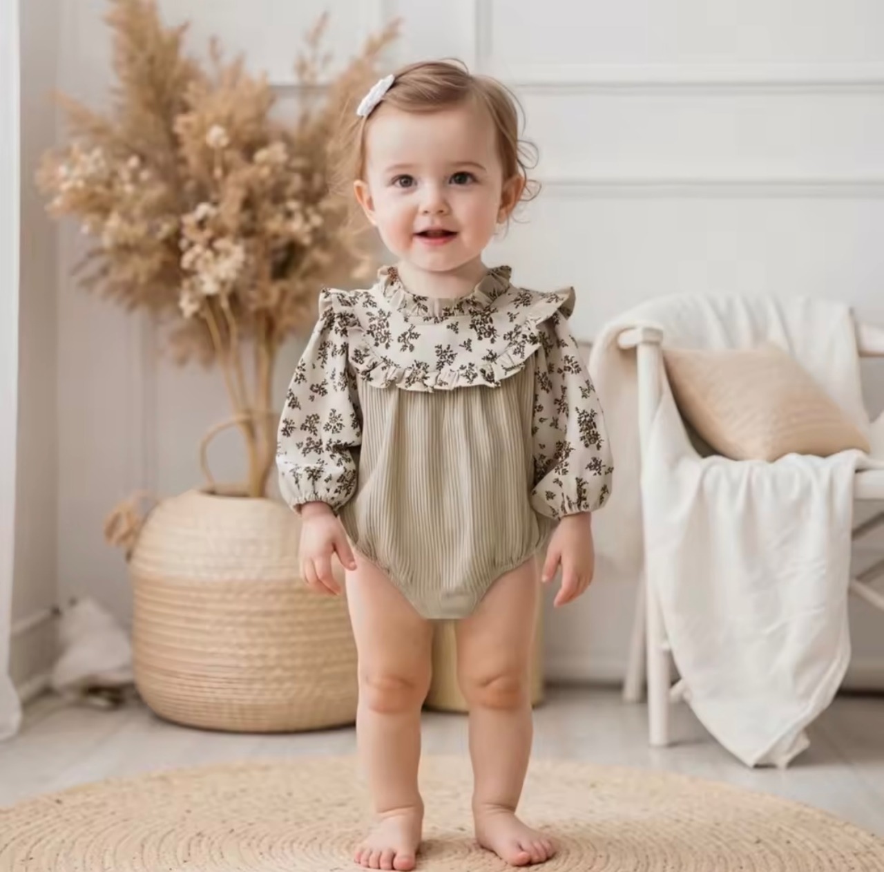 この度は、数あるオンラインショップの中から「花柄モックネックフリルロンパース」をご覧いただき、誠にありがとうございます♪