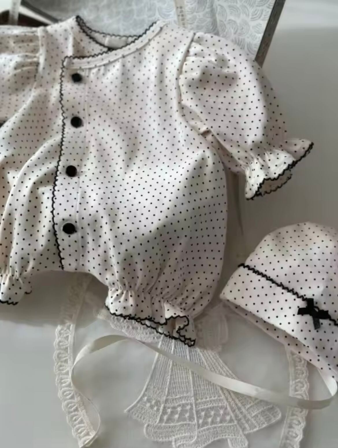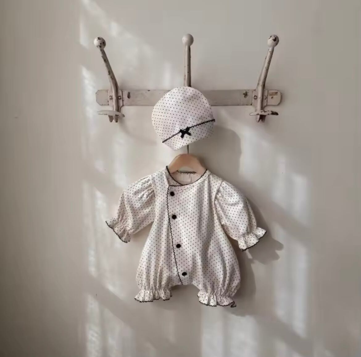 愛らしいドット柄が特徴のこのロンパースは、お子様の日常着にぴったりのアイテムです♡ 柔らかな素材で優しい着心地を実現し、遊びやお出かけのシーンで大活躍します!おしゃれで楽しい一着です◎