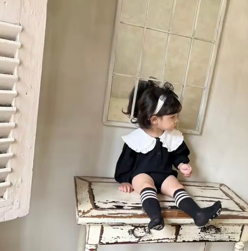 存在感のあるビックターンダウン襟が魅力的なこのロンパースは、赤ちゃんの可愛らしさを一層引き立てる一着です♡ 軽やかで柔らかな素材感により、着心地も申し分なし!特別なイベントや日常のお出かけにも最適な、スタイリッシュなアイテムです◎
