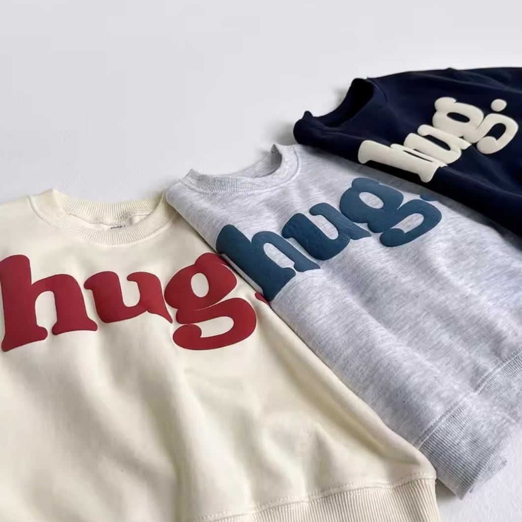 暖かみのあるhugデザインが魅力的なこのトレーナーは、リラックスしたい日やお出かけにもぴったりの一着です♡ 柔らかな素材感で、着心地も申し分なし!カジュアルでありながら、さりげなくおしゃれな印象を与えるアイテムとなっています◎