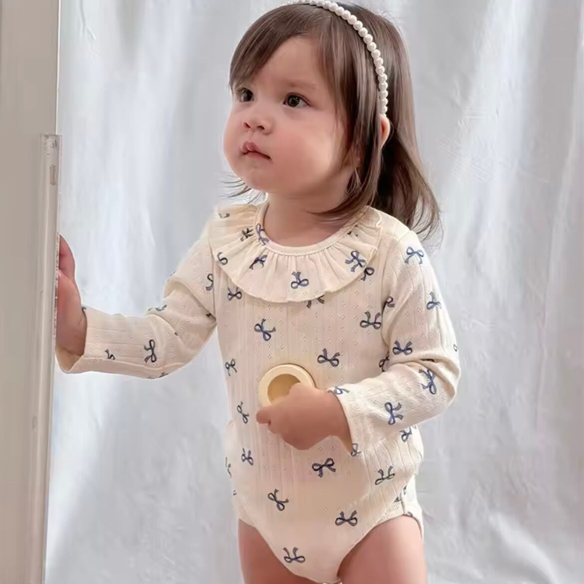 キュートなフリル襟が特徴のフリル襟ロンTは、カジュアルコーデからお出かけスタイルまで、幅広く活躍できるアイテムです♡ 柔らかな肌触りと程良い伸縮性を持つ素材が魅力で、着心地もバツグンです◎