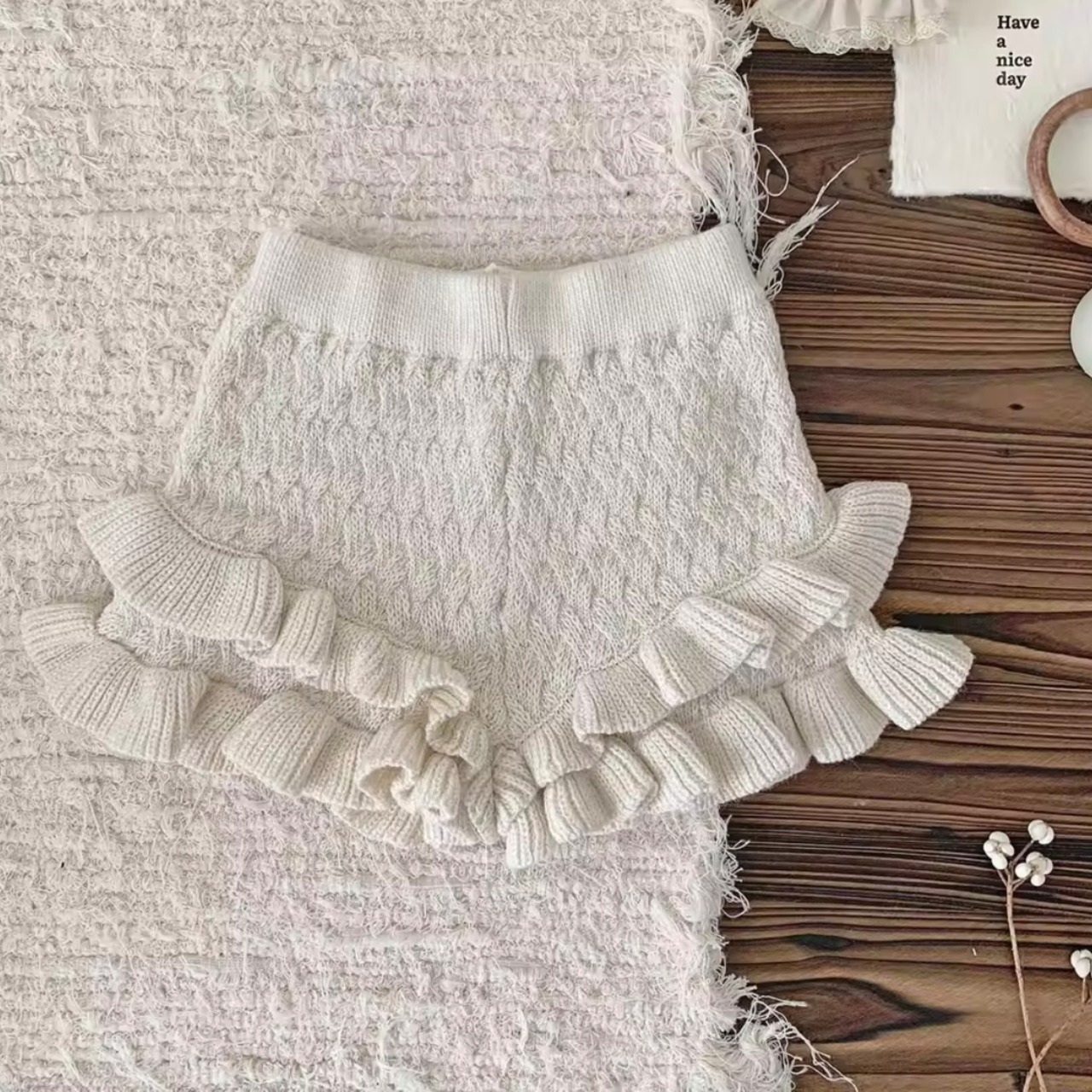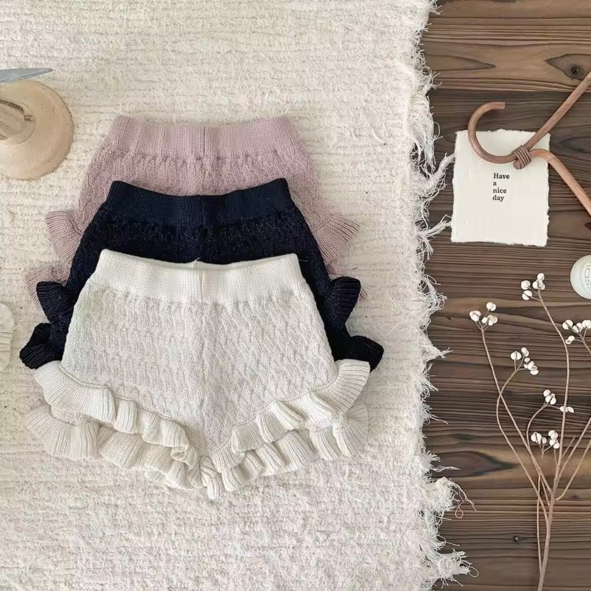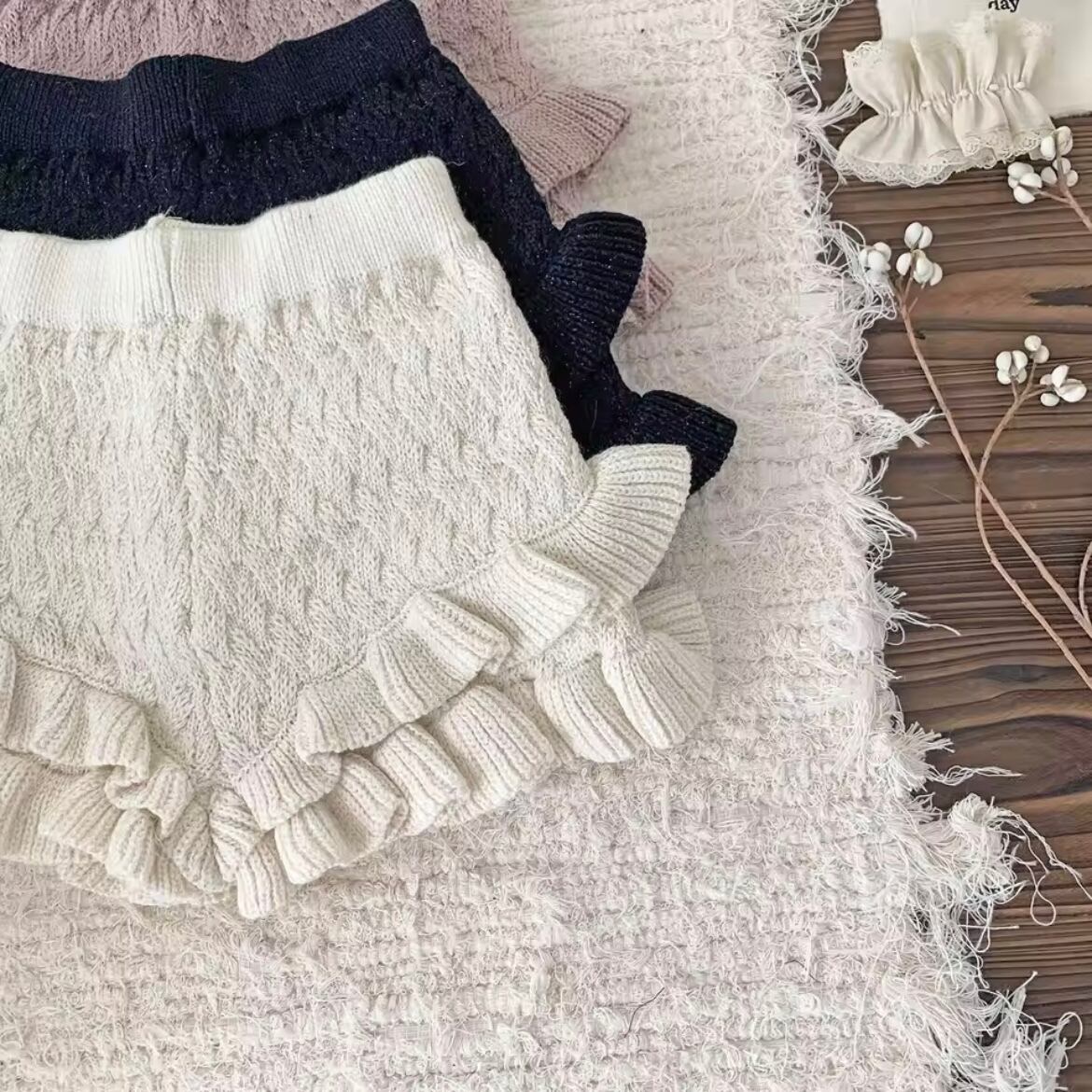 「フリルニットブルマ」は、可愛らしいフリルデザインが魅力的な一着です♡ 柔らかなニット素材を使用しており、肌触りも優しく、快適な着心地を提供します◎ お子様の日常使いや特別なイベントにもぴったりのアイテムです!