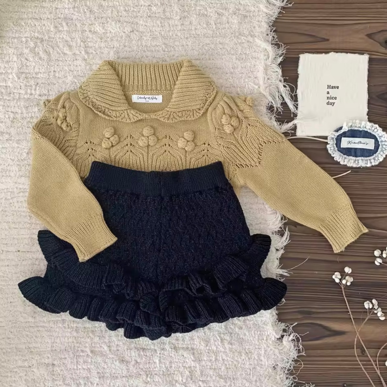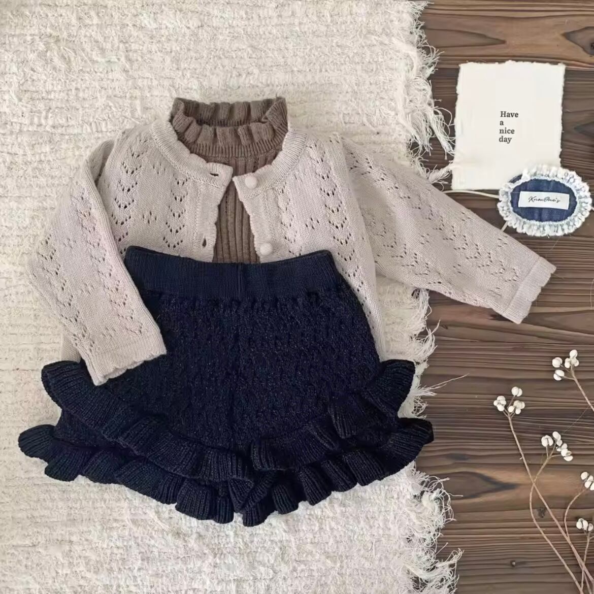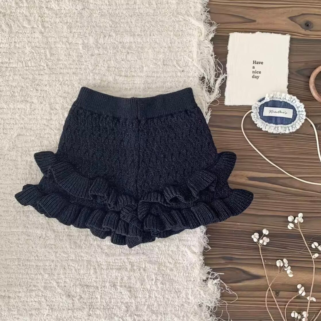 「フリルニットブルマ」は、可愛らしいフリルデザインが魅力的な一着です♡ 柔らかなニット素材を使用しており、肌触りも優しく、快適な着心地を提供します◎ お子様の日常使いや特別なイベントにもぴったりのアイテムです!