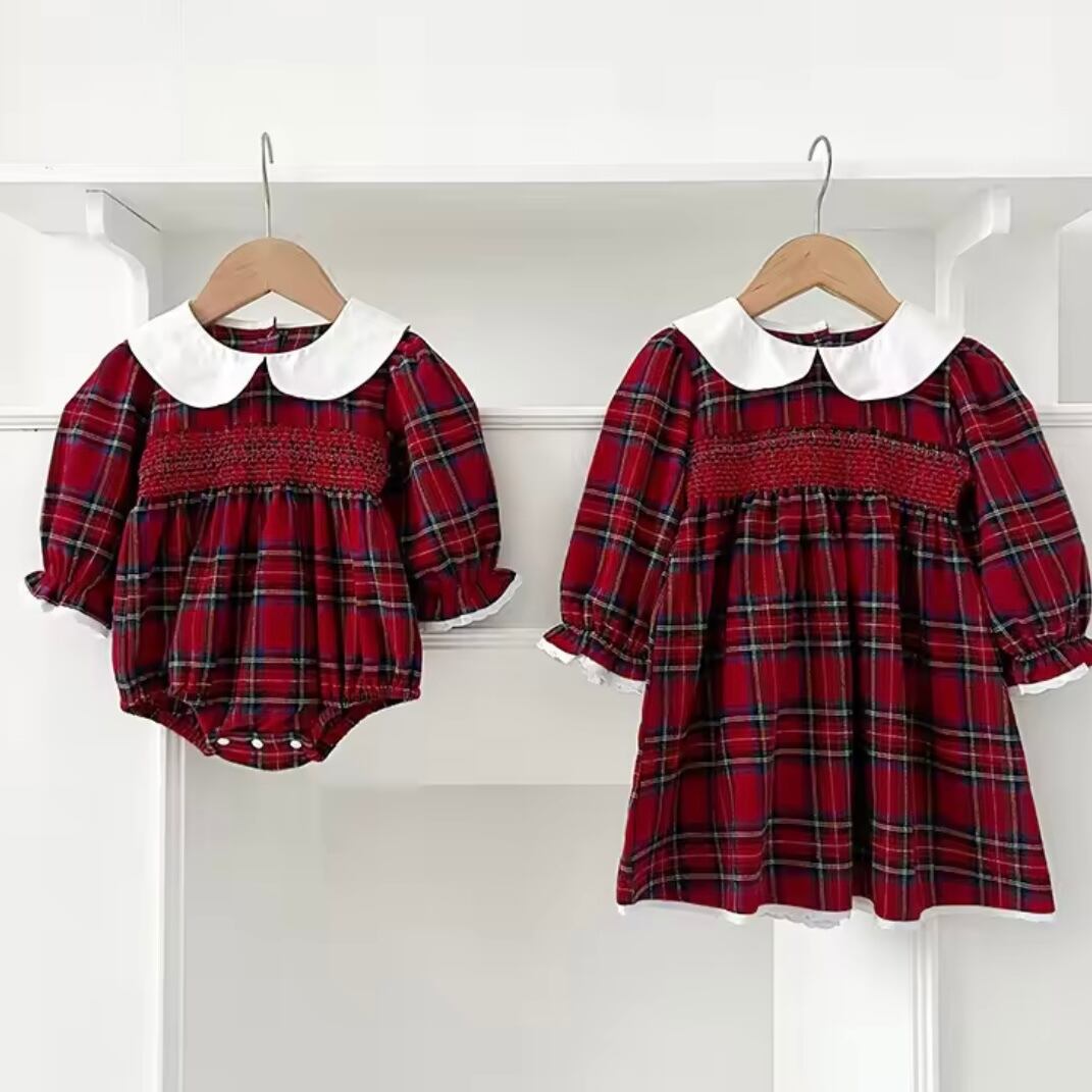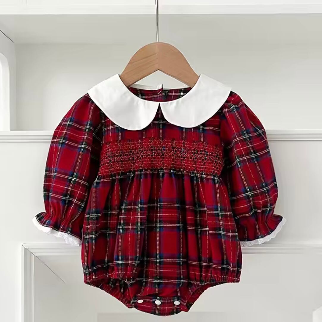 この度は、数あるオンラインショップの中から「赤チェックスモッキング襟付きロンパース」をご覧いただき、誠にありがとうございます♪