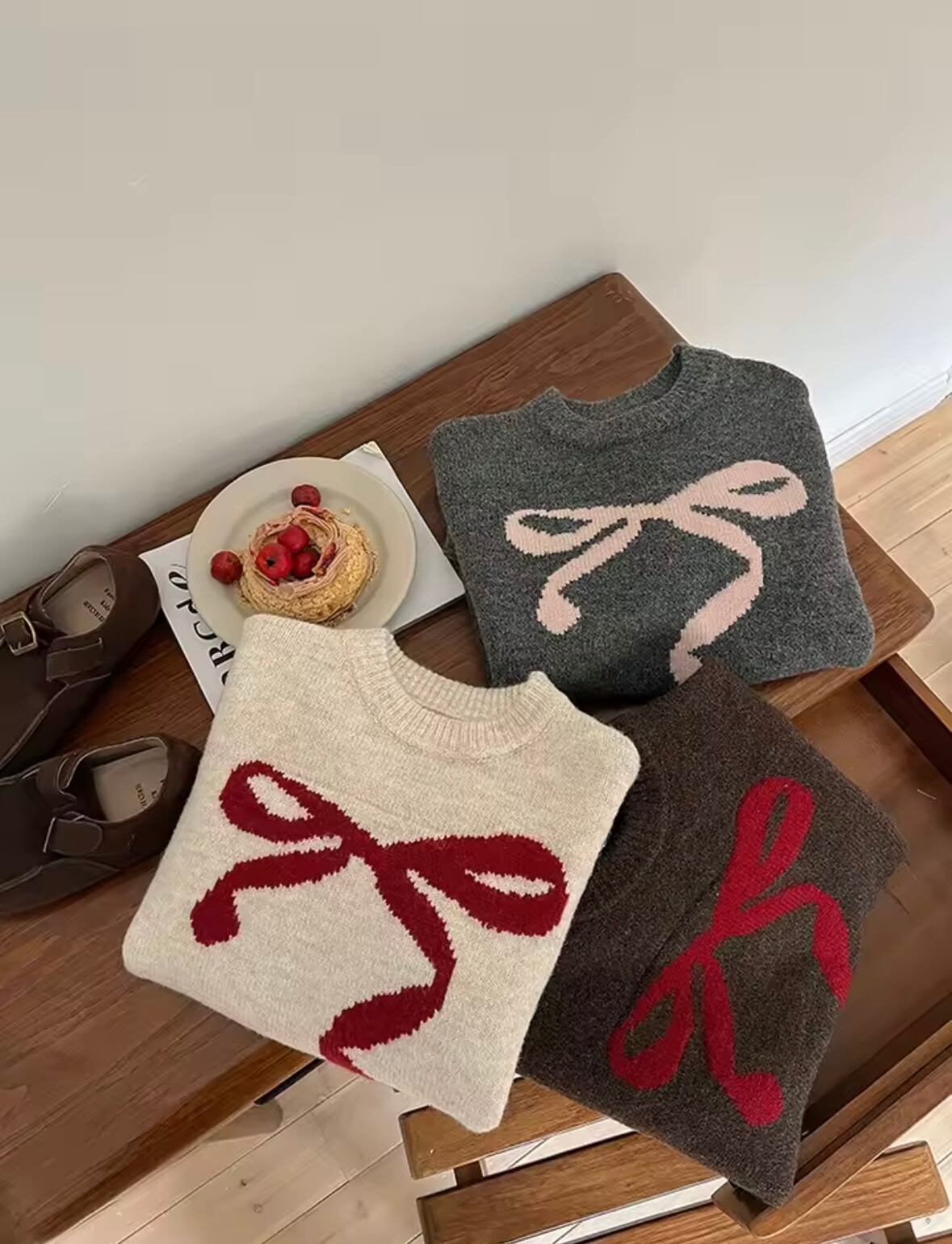 「リボンジャガードニット」は、愛らしいリボンのデザインと、上質なジャガード編みが特徴のアイテムです♡ 肌触りの良いニット素材で、季節を問わず活躍する上品な一枚となっております◎