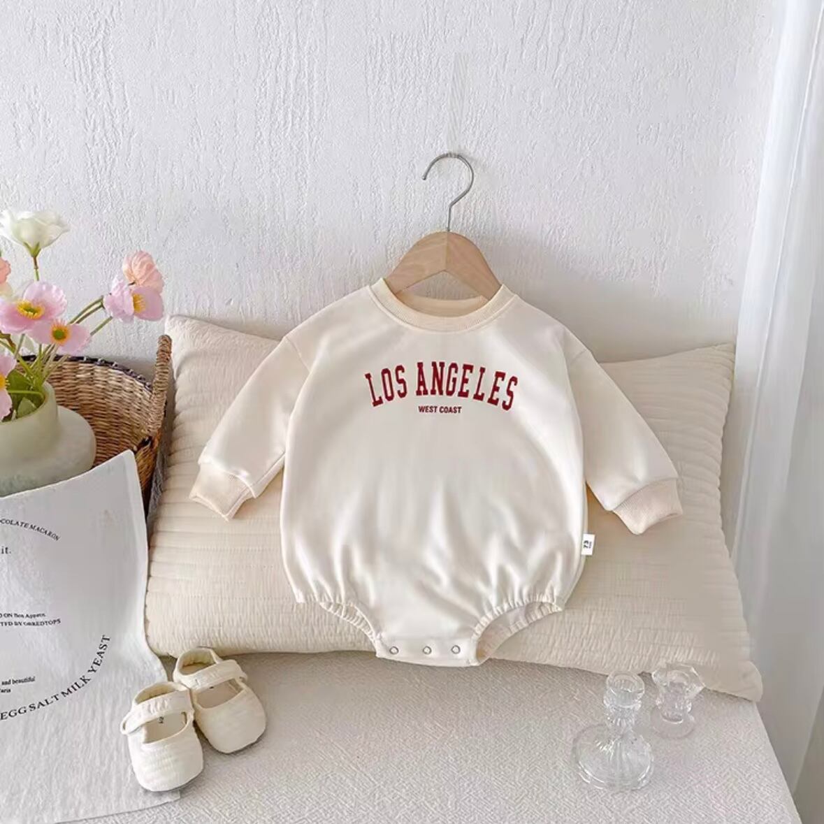 「LA babyロンパース」は、可愛らしいデザインとやわらかな素材が特徴のアイテムです♡ おしゃれさと快適さを兼ね備えた一枚となっており、日常のお出かけや特別なシーンにもぴったりです◎