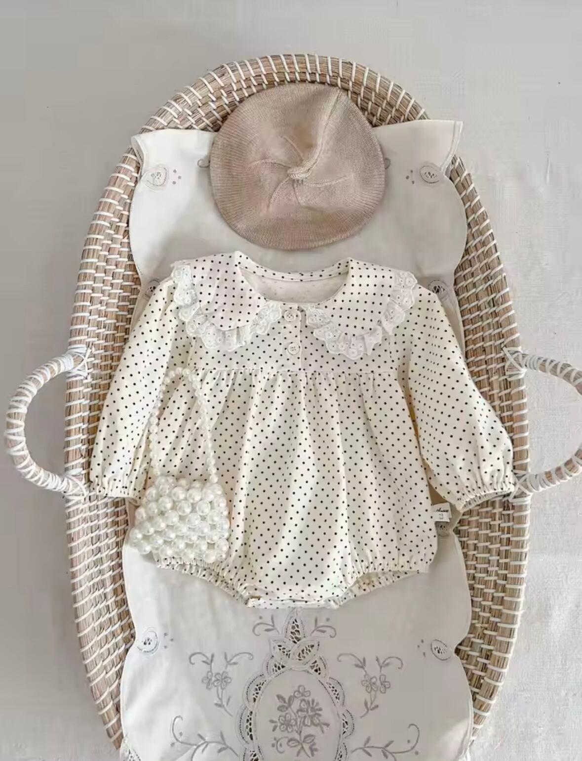 レースカラードットロンパース