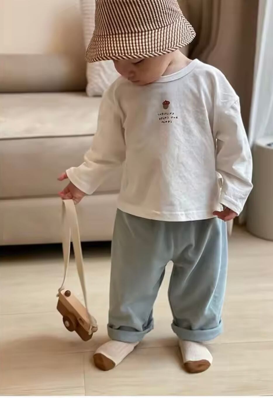 サイズは70〜110を展開しており、動きやすさを考えたフィット感が魅力です! カラーは、シンプルで使いやすいアイボリー、チャコールグレー、爽やかなブルーそしておしゃれなボーダーをご用意しております!