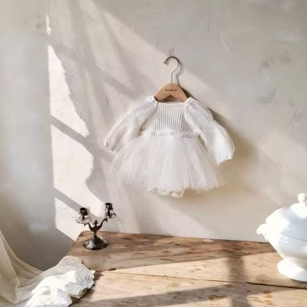 「ベビーチュールロンパース」は、ふんわりとした柔らかなチュール素材と、キュートなデザインが特徴のアイテムです♡ お誕生日パーティーや特別なお出かけにぴったりで、可愛らしさを引き立てます◎